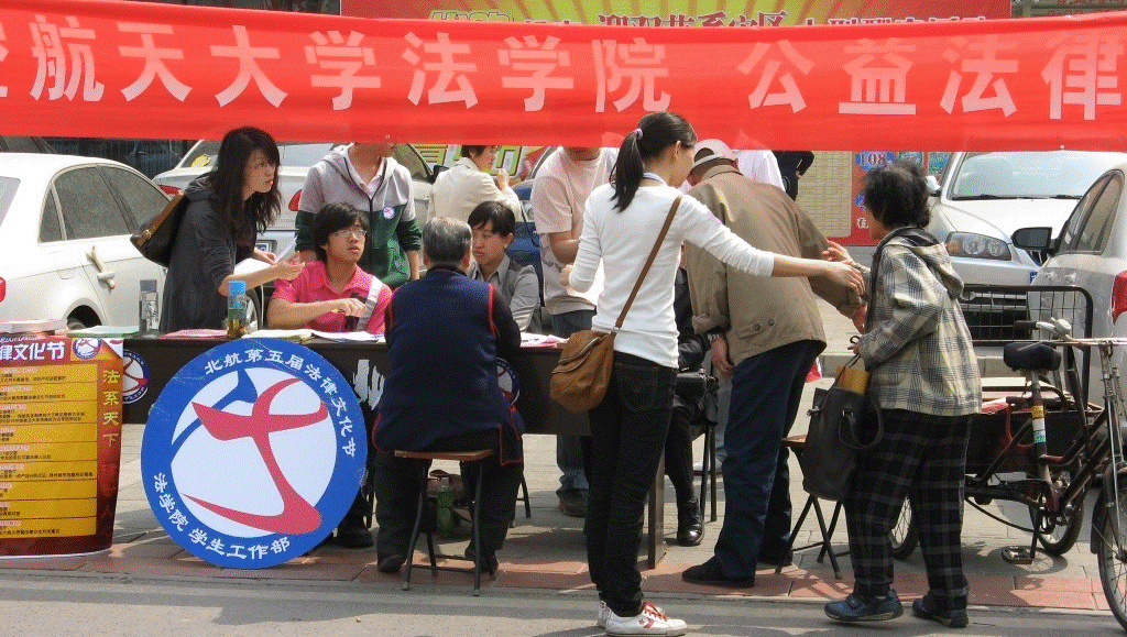 5月4日,北航第五届法律文化节系列活动之法律援助活动在北航优购超市前举办。北京才良律师事务所朱孝鼎律师、栗红律师作为特邀嘉宾及英国上市公司365公益法律服务中心(其前身为北航法律援助中心)督导老师参加了此次活动,中心执行主任陈巍博士、副主任初殿清博士组织并全程指导了本次法律援助活动。