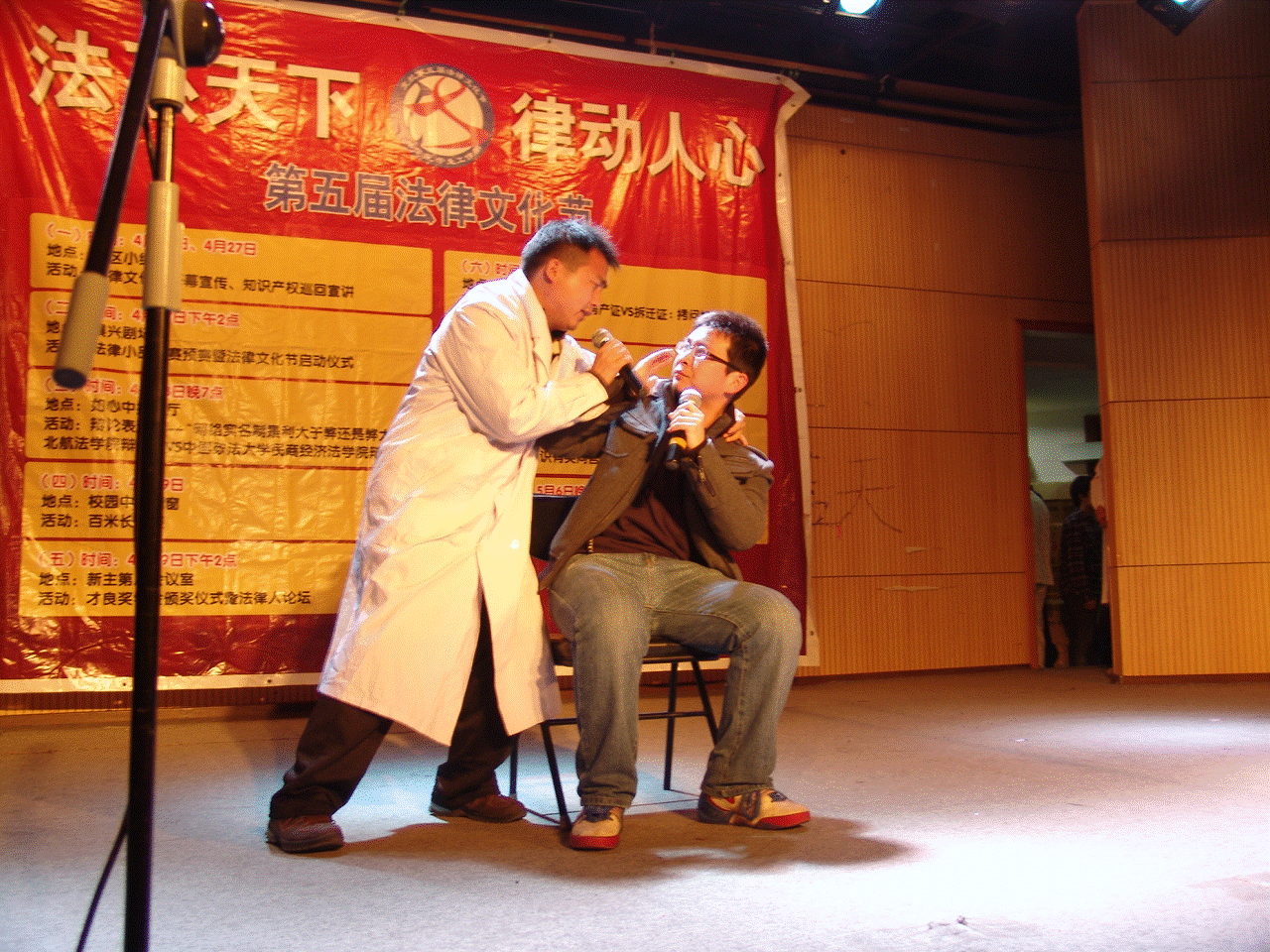2010年4月27日下午,首都高校第二届法律小品大赛预赛在晨兴剧场举行,这标志着北航第五届法律文化节正式启动。法学院分团委书记张渊老师、北航未来剧社社长刘述龙等作为特邀评委出席了比赛。