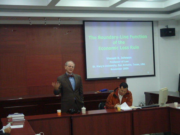 访问期间,Vincent Johnson教授还在法学院模拟法庭给法学院的师生做了一场题为“纯粹经济损失的界限功能”精彩的的学术报告。