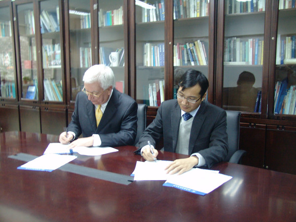 2009年11月12日,美国圣玛丽大学(St. Mary University)法学院院长Charles E. Cantu 教授、Vincent Johnson教授以及图书馆馆长、负责中国事务的 Robert Hu教授按照上次预定的行程,再次正式访问我院。此次访问的目的是与我院正式签署学术交流与合作框架协议。