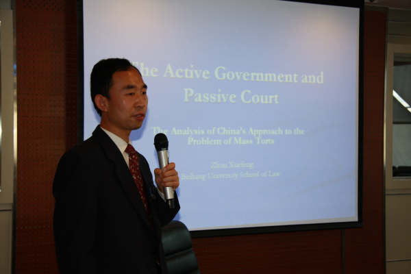 我院教师周学峰博士应中国政法大学中欧法学院邀请,于2009年1月10日参加中欧法学研讨会,就大规模侵权救济问题做专题发言,并与参会的中欧学者进行了讨论。