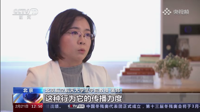 2月21日上午,最高人民检察院举行以“坚持以人民为中心,加强网络时代人格权刑事保护”为主题的新闻发布会,首次发布五件以人格权刑事司法保护为主题的指导性案例。我院裴炜副教授接受央视·法治在线节目《保护网络时代人格权》采访,就指导案例进行专业解读。