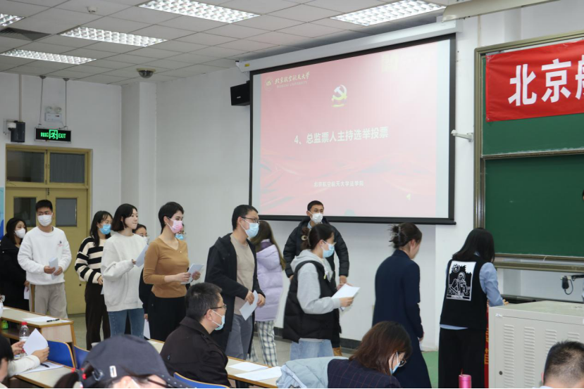 张戈同志就中共北京航空航天大学法学院新一届委员会委员候选人预备人选的基本情况做详细介绍。在总监票人吉冠浩同志主持下,全体与会党员投下了庄严而神圣的一票。