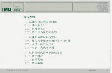 德国慕尼黑大学法学院博士生郑童的报告题目为《科技时代的刑事治理》。首先,郑博士结合学界观点讨论了法律与科技的关系,从权力分配的视角切入,提出权利倾斜问题、累积效应问题、公共法益问题三个批判点。进而得出自己的结论:应当将法律和科技视为两个不同的领域,每个领域都遵循某种逻辑。为应对科技时代,她提出在立法过程中推广法中的程序化,通过涉及注意、审查或者咨询义务的程序将专业鉴定或者伦理评价输送到法律当中;在司法过程中应采纳实践法律观,将科技专业领域或社会学意义上的评判标准纳入解释体系。之后,郑博士通过基因编辑案例,将上述理论具体运用。对比德国《胚胎保护法》,她认为中国的“非法植入基因编辑、克隆胚胎罪”更加适合科技时代的要求,并从伦理和规范两个层面展开了论证,总结刑法对科技时代的应对。