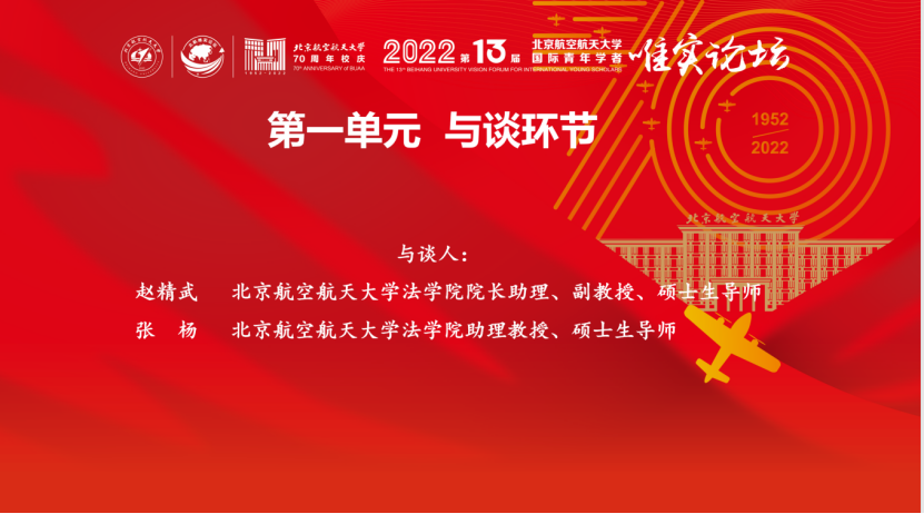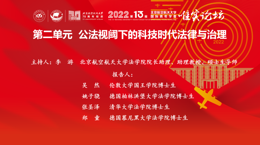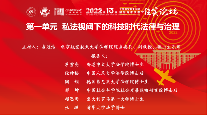 2022年12月24日,北京航空航天大学第十三届国际青年学者唯实论坛“科技时代法律与治理”分论坛在线上隆重召开。论坛邀请来自德国、意大利、英国、日本等多个国家和地区的12位国际青年学者,进行专题报告。这些学者主要来自德国柏林洪堡大学、德国慕尼黑大学、意大利罗马第一大学、伦敦大学国王学院、香港中文大学、清华大学、中国人民大学等高校。报告内容主要围绕民商法、经济法、宪法学与行政法学、刑法、罗马法和比较私法等领域。在线参会人员近100人。
