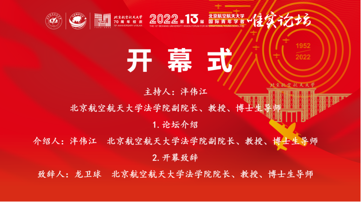 北京航空航天大学法学院副院长泮伟江教授担任本次论坛开幕式的主持人。泮伟江教授对此次论坛进行了介绍,唯实论坛旨在围绕建设“中国特色世界一流大学”目标汇聚全球英才,打造卓越师资队伍,以文会友,发现人才,并随后介绍了本次论坛举办的渊源、意义与主旨。