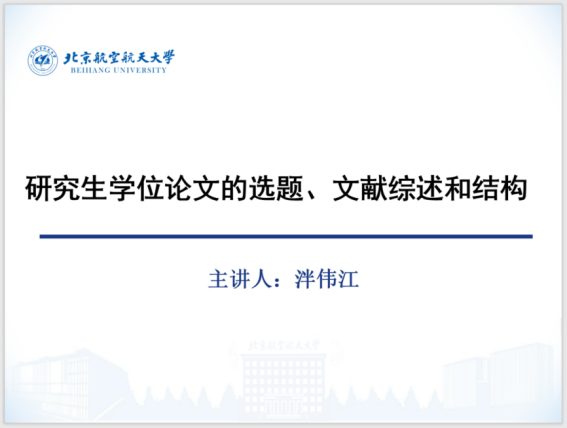 泮伟江教授从研究生学位论文选题的意义、含义及如何选题,文献综述的概念、意义及基本步骤,论文结构的重要性、构成要素及结构中绪论、本论、结论的行文安排等十个方面展开,详细讲述了撰写博士学位论文应当注意的基本及重点问题。