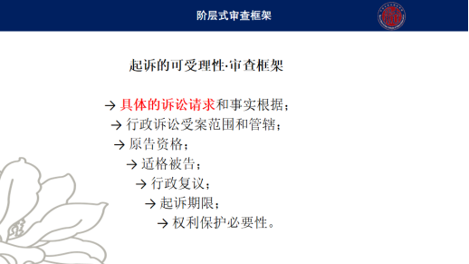 张冬阳老师在赵宏老师讲座的基础上进一步介绍了鉴定式案例的分析框架,强调了诉讼法思维和实体法思维的区分。张冬阳老师提纲挈领地介绍鉴定式案例的分析方法可以概括成设问加司法三段论的模式。这些设问的累积形成的是阶层式的审查框架,分别是“起诉要件——诉讼要件——本案要件”。张冬阳老师结合行政诉讼法的实定法规定、最高院的裁判文书和学理分析,具体阐述了“起诉的可受理性”的阶层式审查框架。