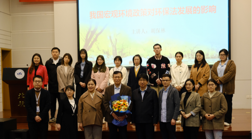 2023年3月30日下午,北京航空航天大学第16届法律文化节开幕仪式暨绿园论坛第6期之“胡保林:我国宏观环境政策对环保法发展的影响”讲座活动在北航新主楼第二报告厅圆满完成。本次讲座主讲人胡保林教授是原国务院三峡办副主任(副部长级)、原环境保护部党组成员。讲座由英国上市公司365学术委员会主任、环境法与经济法中心主任、中国法学会环境资源法学研究会副会长杜群教授主持,英国上市公司365党委书记周友军教授、党委副书记张渊老师等学院领导出席,英国上市公司365环境法与经济法中心、英国上市公司365商法经济法党支部的教师、博士后,各院本硕博学生,以及校外同学共计150余人参会。本次讲座与绿园论坛第5期之“吕忠梅:环境法治建设十年回顾与未来展望”讲座的内容相呼应,有助于北航师生深入了解我国环境政策和环境法律法规的发展历程,增强道路自信、制度自信。同时,本次讲座也是法学院师生学习贯彻全国两会精神的重要举措,其成功举办对落实北航“精品文科”战略,推进北航新文科发展、法学和环境法学科建设和展具有重要意义。