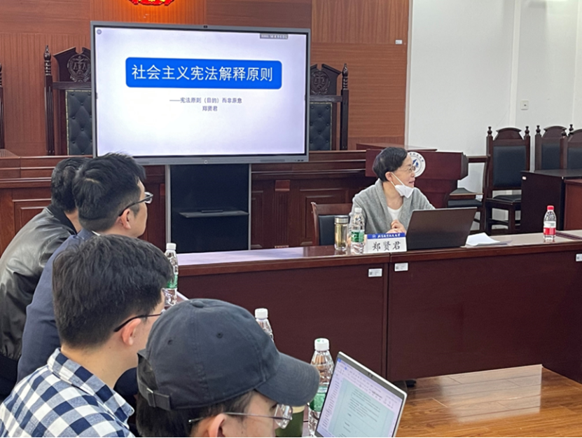 2023年4月12日下午,“备案审查大讲堂”第六期在学院路校区如心楼101教室开讲。本期主讲人是中国法学会宪法学研究会副会长、首都师范大学政法学院郑贤君教授。郑老师本次演讲的主题是:社会主义宪法解释原则。讲座由北京航空航天大学备案审查制度研究中心主任王锴教授主持,法学院宪法与行政法中心翟志勇教授和杨登杰教授担任与谈嘉宾。