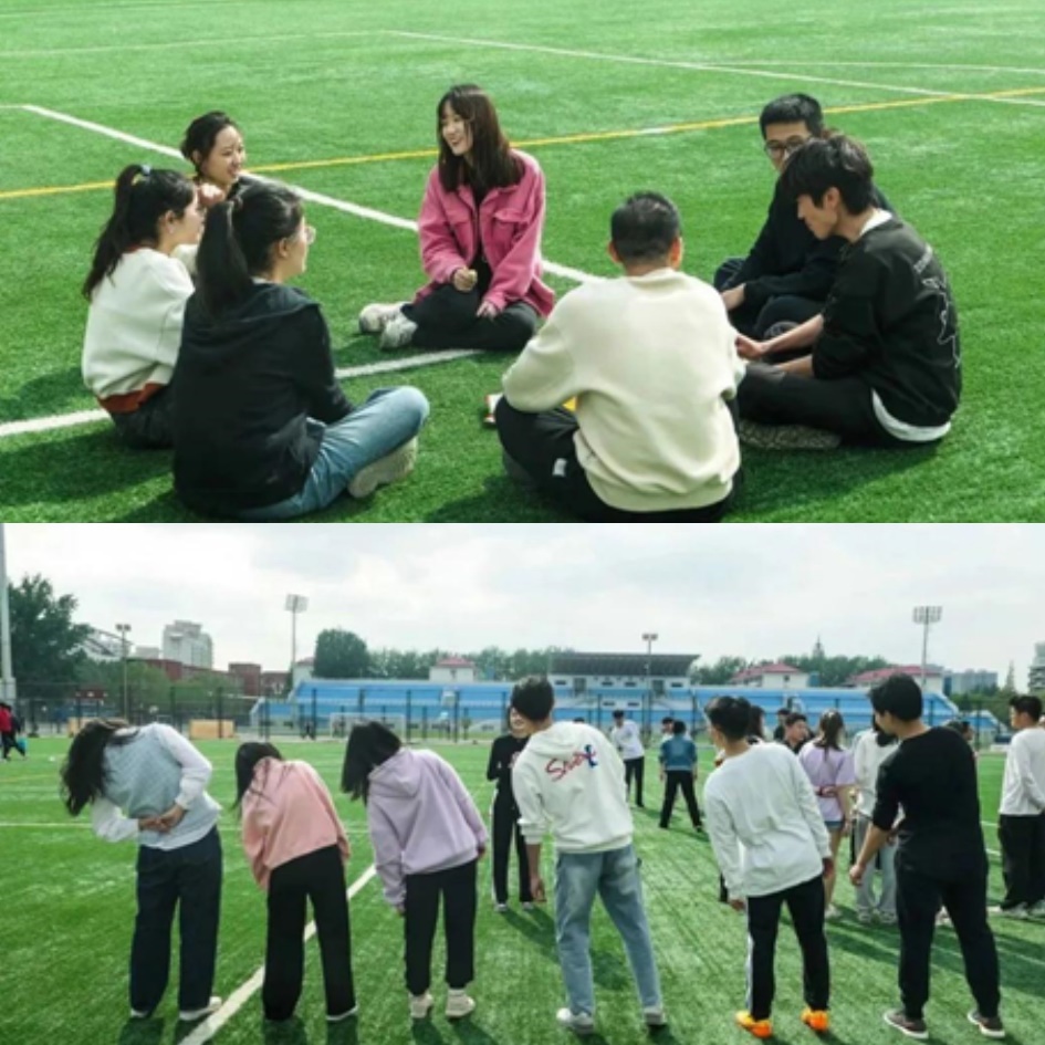 飞盘运动较为考验团队合作精神,因此在正式开始比赛之前,通过小游戏和想队名、口号来增强同学们对伙伴的熟悉感,拉近彼此之间的距离。队伍的名称与口号为本次活动增添了快乐与新意,同学们在大声喊出队名和口号的同时也增强了本队的认同感和凝聚力。