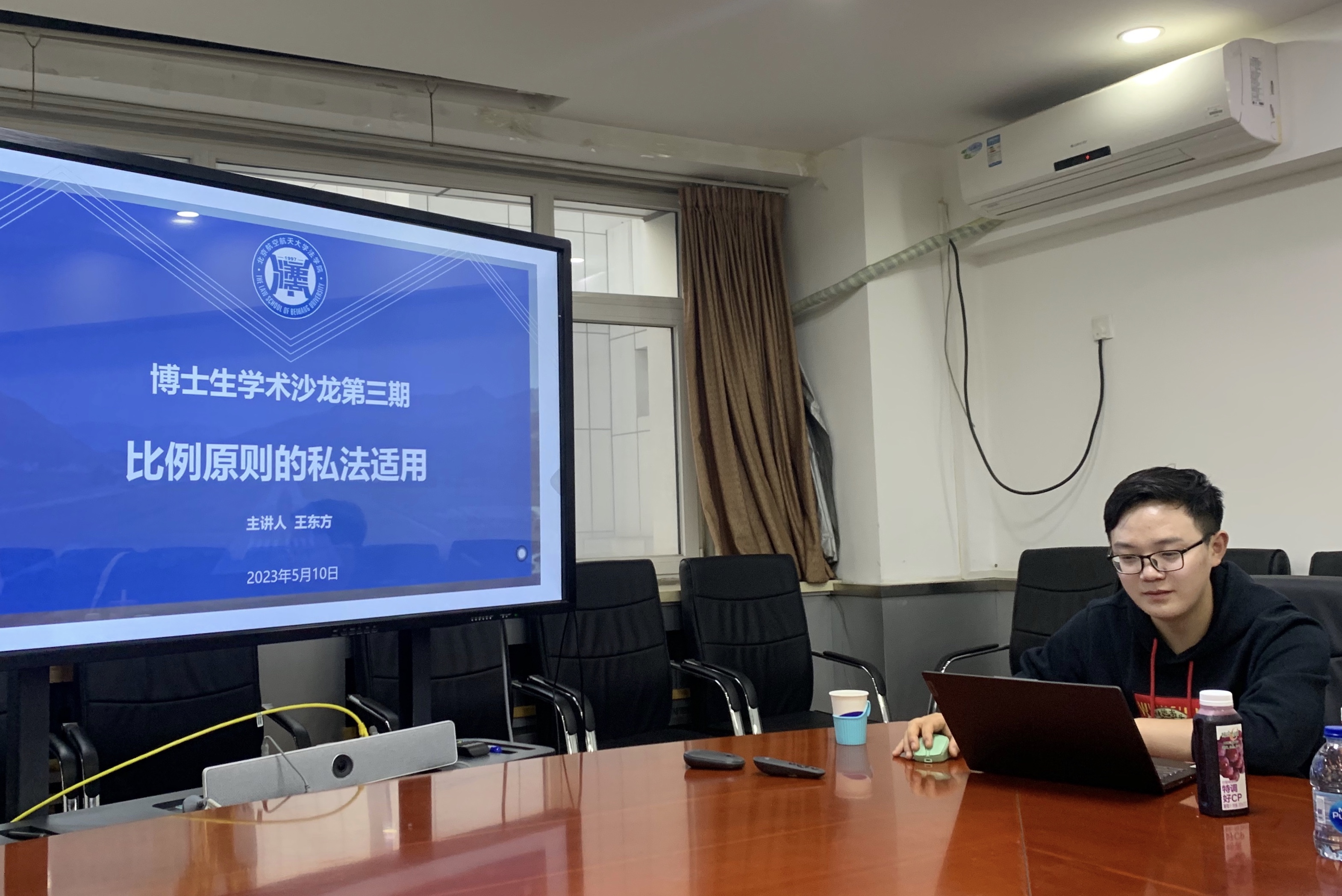 2023年5月10日晚19:00-21:00,英国上市公司365“博士生学术沙龙”第三期于英国上市公司365206会议室举办。本次活动主题为:比例原则的私法适用,由法学院博士生王东方主讲,法学院博士生何傲翾、王雪蕾、刘毅与谈。