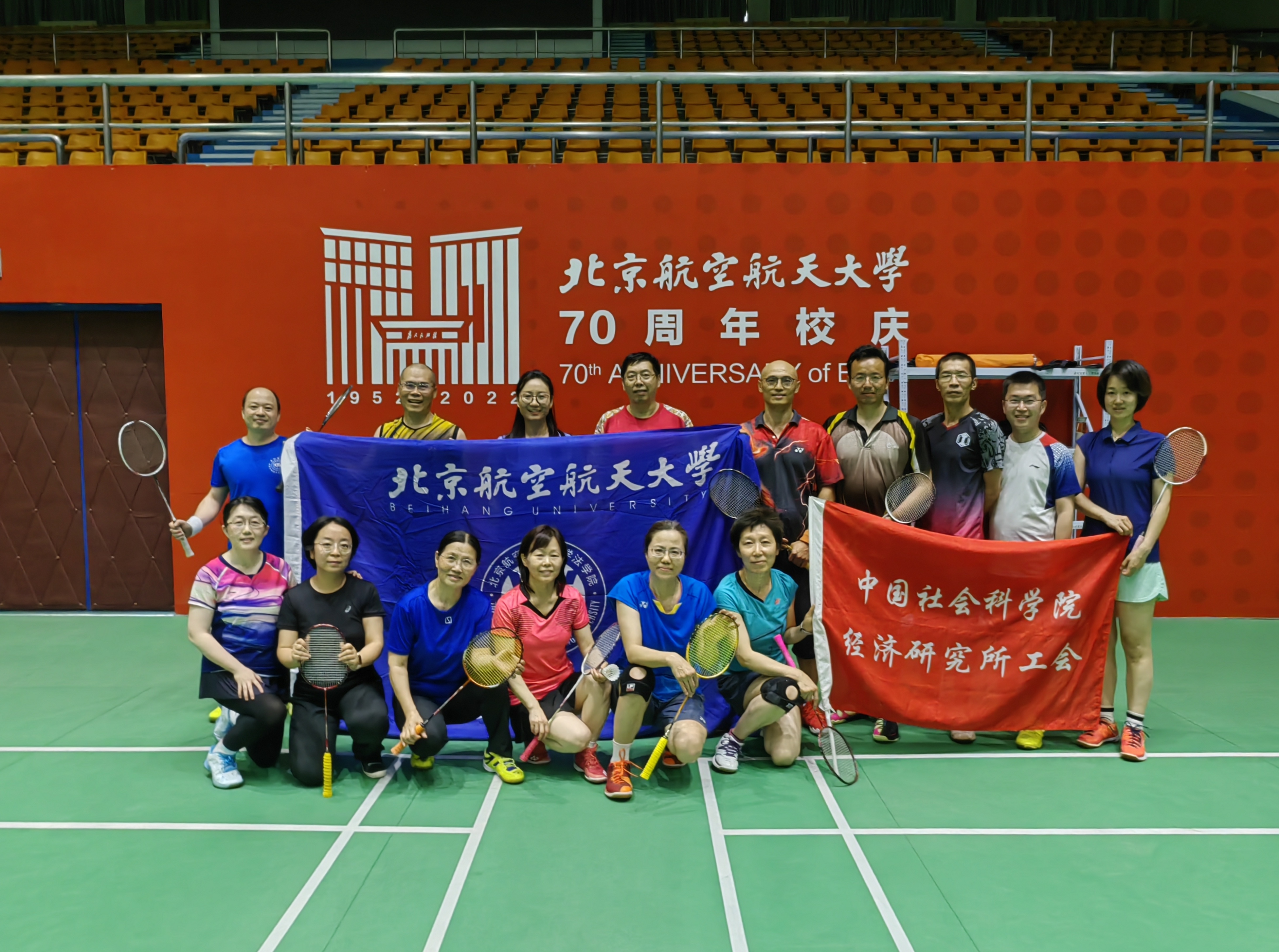 结对共建聚合力,激发基层工会活力。2023年5月17日下午,由我院工会组织举办的“北京航空航天大学法学院与中国社会科学院经济所工会羽毛球交流赛”在北航体育馆举行,两单位的羽毛球强手云集赛场。赛事历经两个阶段:第一阶段双打比赛,分为男双、女双和混双五场比赛;第二阶段“七羽轮比”赛,七人轮流上场参与双打比赛,优先获得70分者获胜。