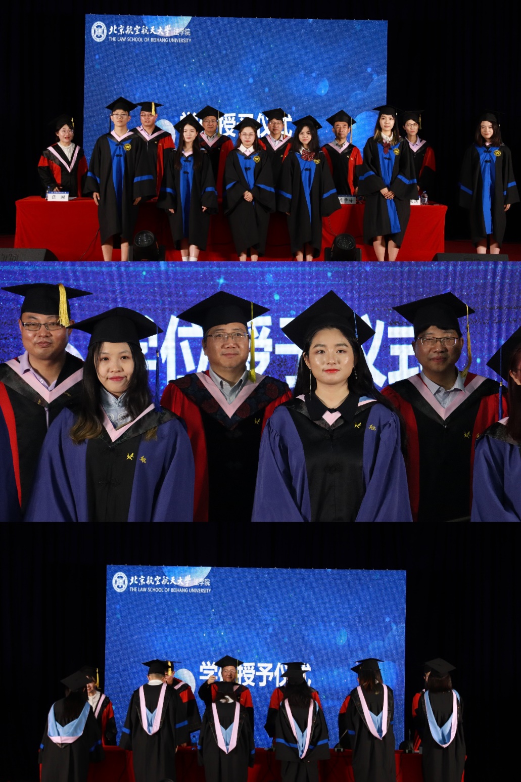 典礼结束后,举行法学院2023届学位授予仪式。在《仰望星空》的旋律中,院领导为在场毕业生拨苏正冠,临别再寄语再嘱咐。鲜衣怒马少年时,不负韶华行且知。希望优秀的航法学子们眼有星辰,心有繁花,策马扬鞭,前程似锦!