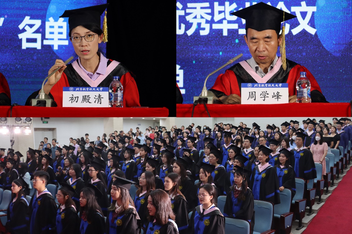 毕业典礼在庄严的国歌声中正式开始。法学院学位委员会主任龙卫球宣读授予学位学生名单。法学院党委书记周友军宣读2023年北京市优秀毕业生名单。法学院副院长初殿清宣读2023年校级优秀毕业生名单。法学院副院长周学峰宣读2023年院级优秀毕业论文及校级优秀毕业论文候选人名单。