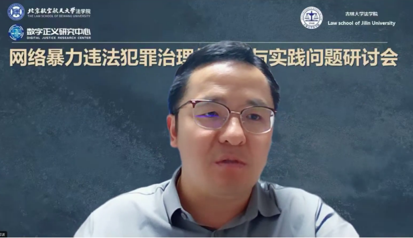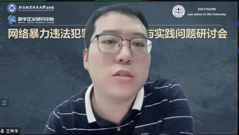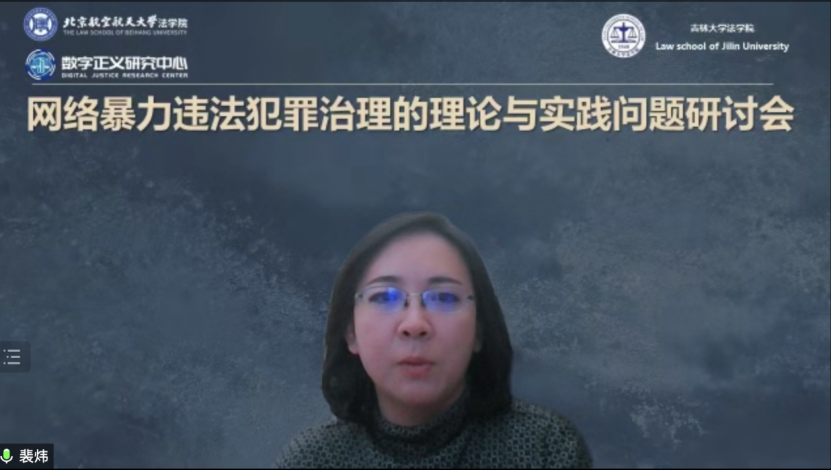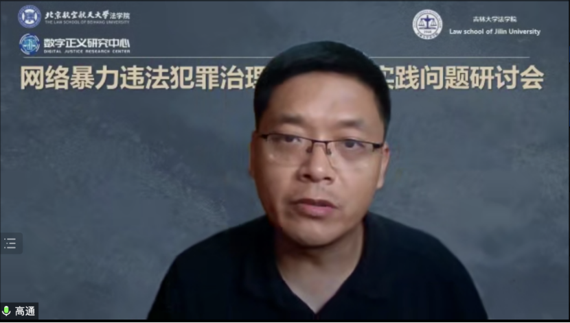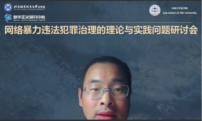 2023年6月21日,北京航空航天大学法学院数字正义研究中心、吉林大学法学院企业合规研究中心共同主办的“网络暴力违法犯罪治理的理论与实践问题”学术研讨会于线上成功举行。来自北京外国语大学法学院、中国社会科学院大学法学院、吉林大学法学院、北京航空航天大学法学院、西南政法大学刑事侦查学院、南开大学法学院、中国政法大学刑事司法学院、天津大学法学院、天津大学计算机学院、山东大学法学院、北京交通大学法学院的十三位老师,围绕《最高人民法院、最高人民检察院、公安部关于依法惩治网络暴力违法犯罪的指导意见(征求意见稿)》(以下称《征求意见稿》)进行了充分的交流与探讨。本次研讨会共分为两个单元。