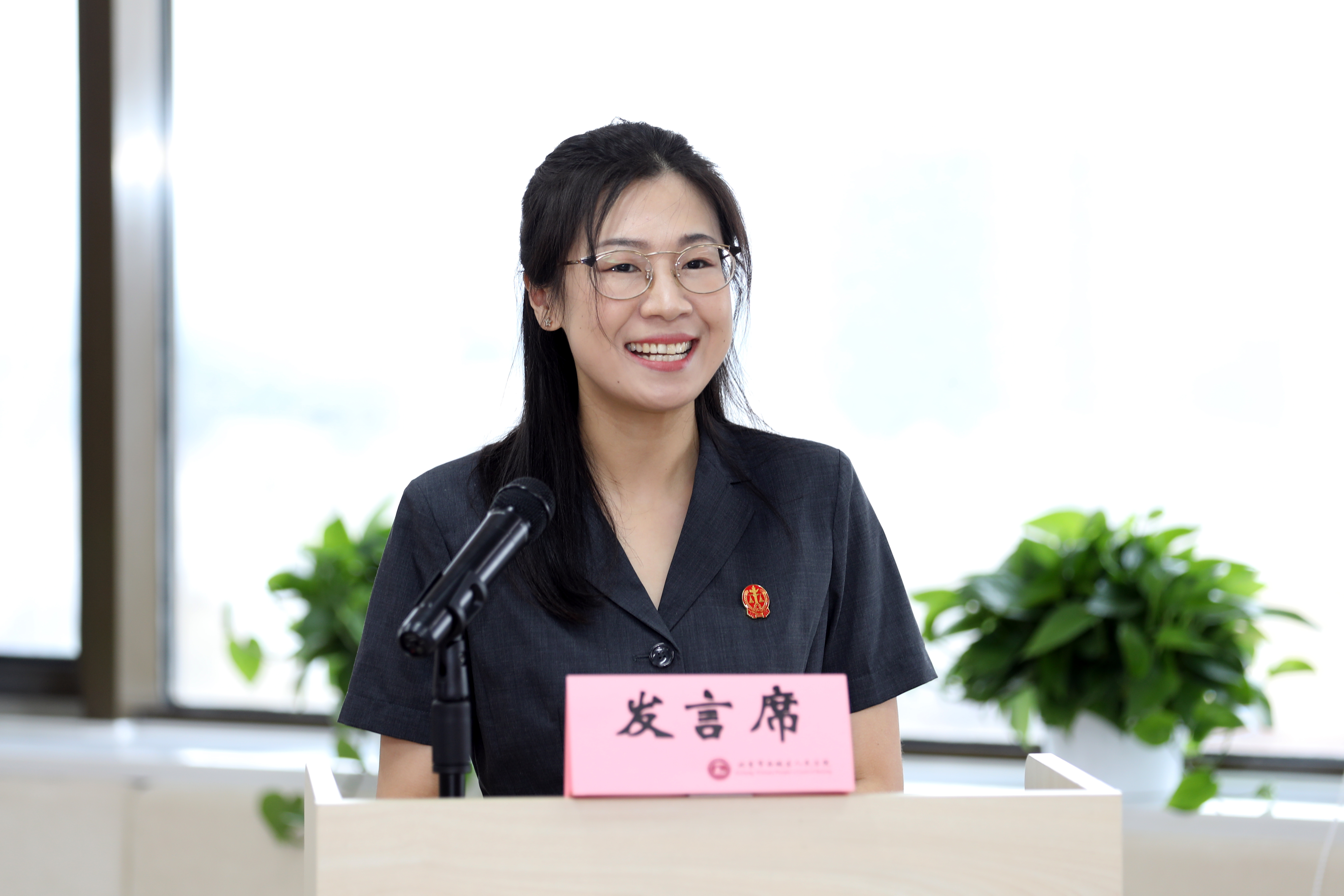座谈会上,赵莹主任致辞,对龙卫球院长一行的到来表示热烈欢迎。赵莹主任指出,北京航空航天大学法学院与西城法院建立的法学教育实践基地是打破高校和社会之间的体制壁垒,将法院的优质实践教育资源与高校法学教育、法学研究相结合,促进法治人才交流的有机实践。有助于增进法院与法律院校的深度交流合作,实现法学生培养与司法后备人才素质能力提升的双循环,为全面赋能司法、实现审判工作的高质量发展注入强大动力。