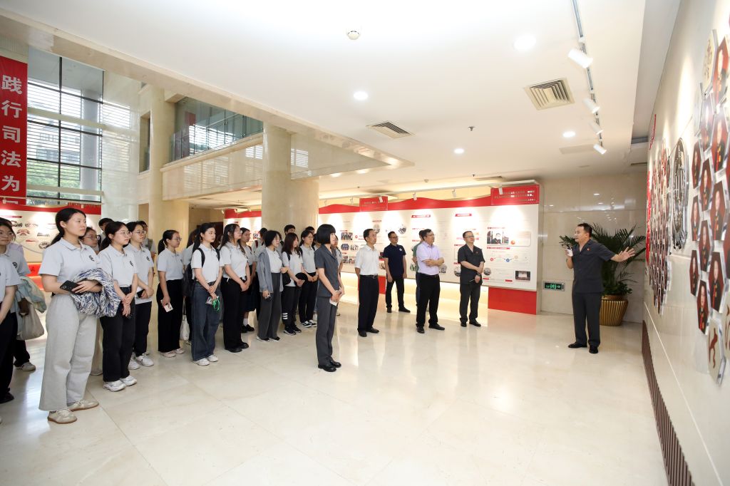 龙卫球院长一行首先参观了西城法院“法卫红墙 责任担当”工作展,听取工作人员讲解介绍,对西城法院各项工作和成果给予充分肯定。