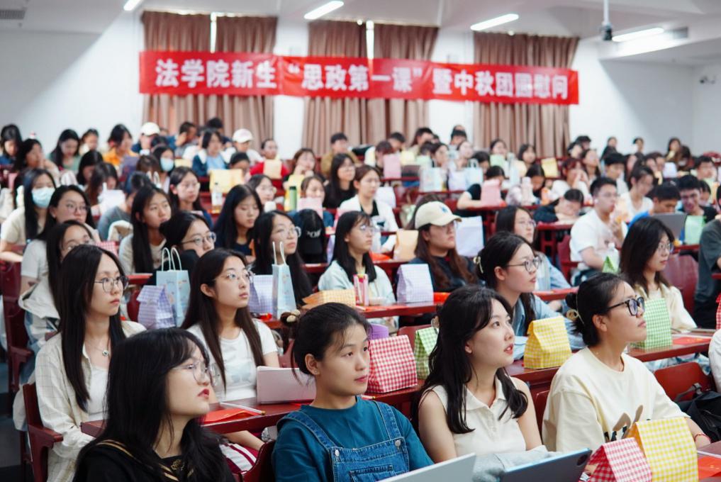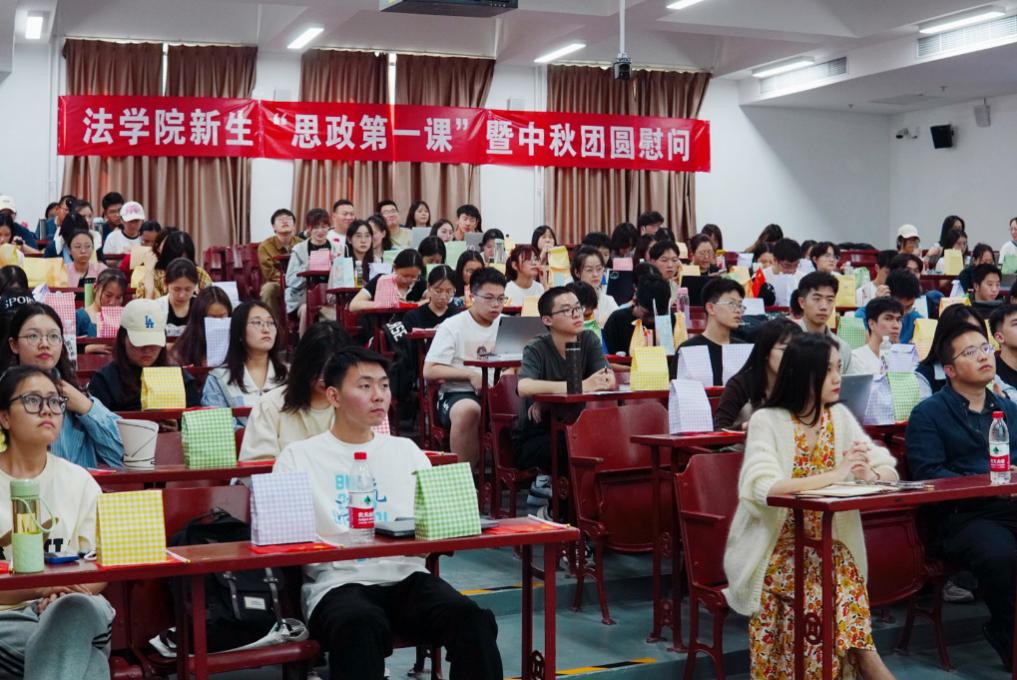 9月27日下午,法学院党委书记周友军老师在学院路校区三号楼204教室,以《北航法律人的伦理与技艺》为题,为法学院2022级本科新生、2023级研究生新生讲授新学期“思政第一课”,并在国庆中秋“双节”来临之际,代表学院为同学们带来慰问礼品与真切祝福。法学院党委副书记邹沛东、专职辅导员夏梦彤、半脱产辅导员李腾飞、本研新生一同参加活动。