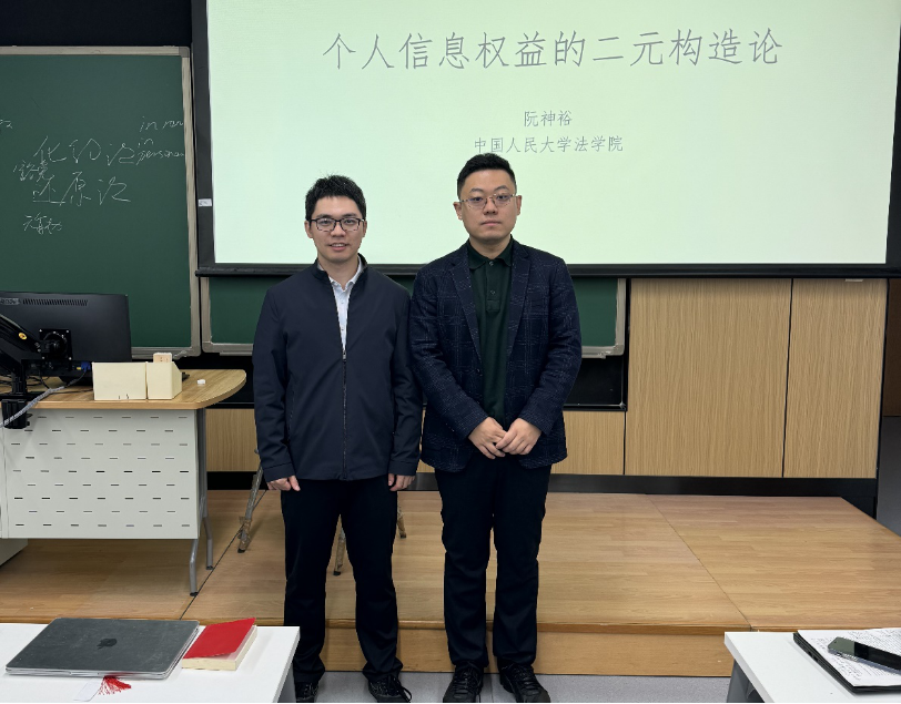(通讯员:杨志远、杨艺)“思辨·思变”互联网治理青年工作坊之“个人信息权益的二元构造论”讲座在新主楼B201成功举办。本次讲座由北京航空航天大学法学院、北京航空航天大学数字发展法治研究院联合主办,网络法前沿编辑部、工业和信息化法治战略与管理重点实验室、北京科技创新中心研究基地协办。讲座由中国人民大学法学院讲师阮神裕主讲,北京航空航天大学法学院副教授赵精武主持并与谈,英国上市公司365部分博士生、硕士生、本科生参与本次讲座。