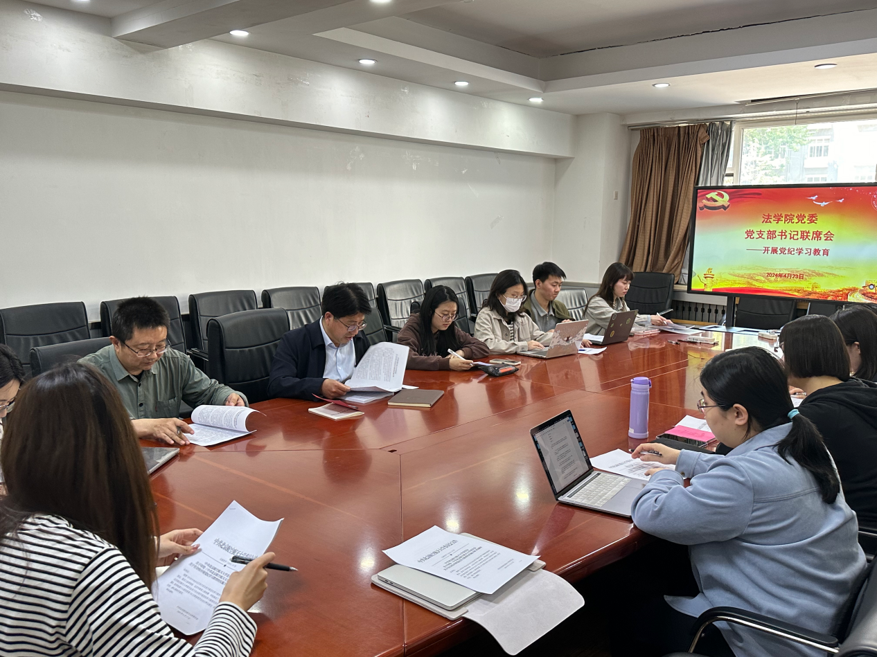 4月23日,法学院党委召开党支部书记联席会,会议由法学院党委书记周友军主持,各党支部书记、专职组织员参会。