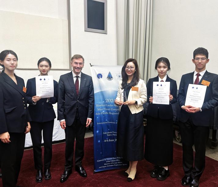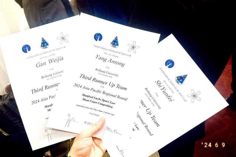 2024年6月8至9日,由国际空间法学会主办,日本学习院大学承办的第33届曼弗雷德·拉克斯(Manfred Lachs)国际空间法模拟法庭竞赛(亚太赛)在日本东京圆满落下帷幕。本次赛事得到日本外务省、日本内阁府国家空间政策秘书处和日本宇宙航空研究开发机构(JAXA)的支持。经过激烈角逐,我校代表队名列第四名,荣获一等奖,成为首次入围亚太赛即荣获四强的中国高校队伍,创造我校历史最好成绩。