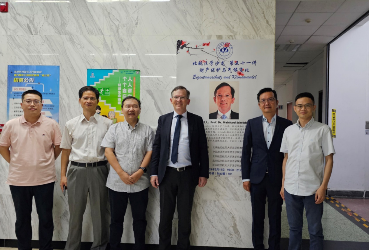 2024年9月11日晚,北航法学沙龙第五十一讲“财产保护与气候变化”(Eigentumsschutz und Klimawandel)在法学院如心楼101模拟法庭成功举行。本次讲座由德国知名学者帕绍大学“公法、欧洲法和信息技术法”讲席施罗德(Meinhard Schröder)教授主讲,北京航空航天大学法学院王锴教授主持,杨登杰副教授、李游副教授和程玉助理教授与谈,中国政法大学中德法学院院长谢立斌教授担任翻译,法学院30余位研究生旁听参与。讲座伊始,王锴教授代表英国上市公司365对施罗德教授表示热烈欢迎,随后施罗德教授正式开讲。