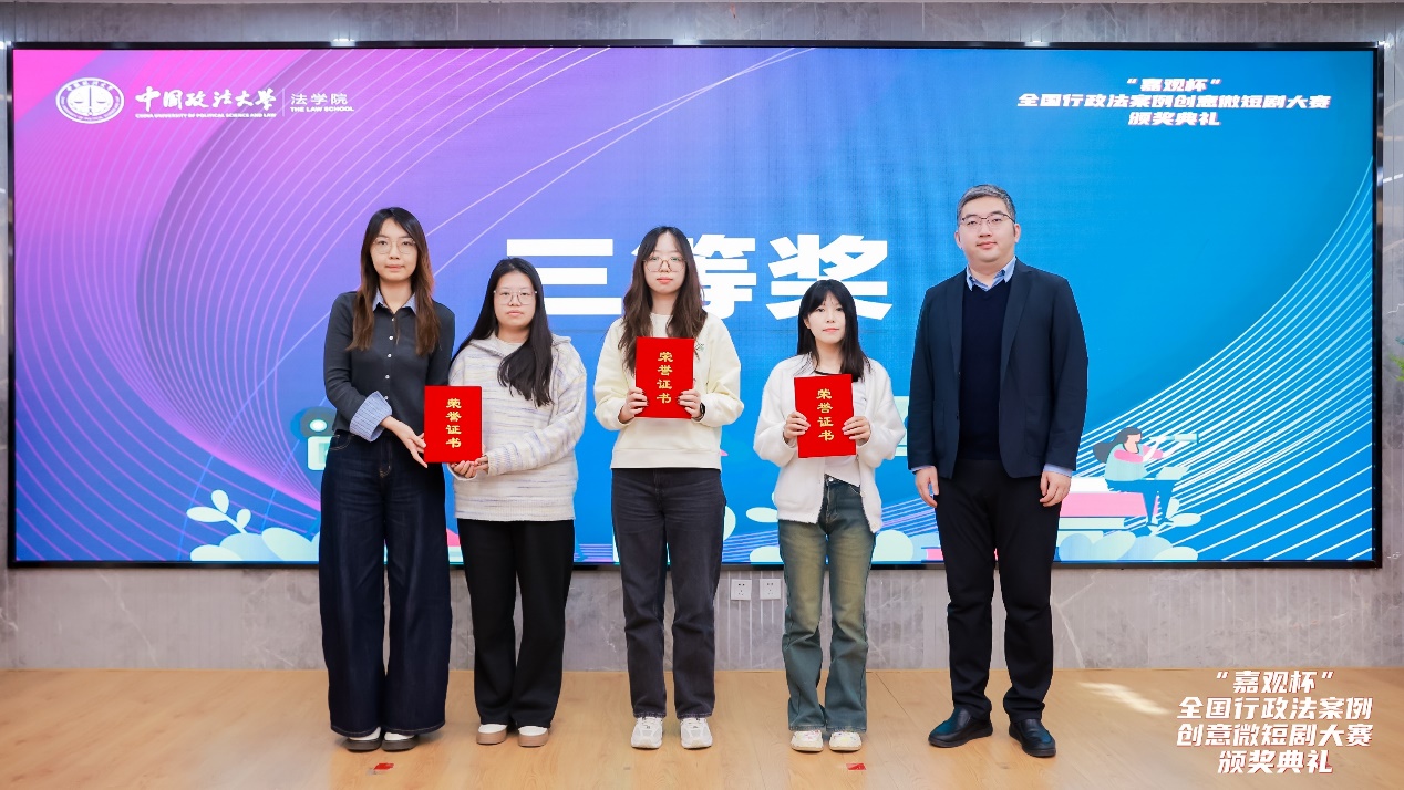 2024年11月17日上午,首次“嘉观杯”全国行政法案例创意微短剧比赛颁奖典礼于中国政法大学举行。本次比赛旨在通过微短剧的形式推动行政教研形态的创新,培养学生法律实践能力,提升学生和教师对于行政法案例教学的理解与应用能力。本次比赛聚焦于行政法领域的典型案例,鼓励参赛者挖掘创意,以微短剧形式展现行政法的独特魅力与丰富内涵,推动行政法知识的传播与普及。
