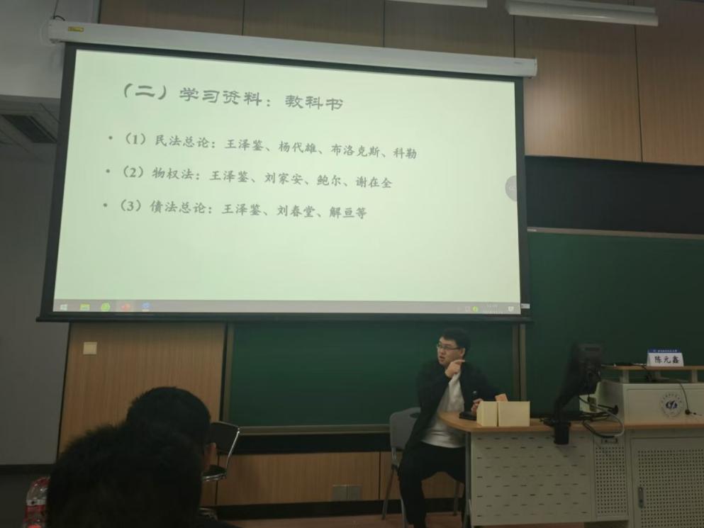 讲座第一部分,陈元鑫老师从学习经历、工作经历和教学经历三个方面进行了自我介绍,他分享的自己这段“法学生的非典型成长经历”,引起了现场听众深深的共鸣。陈元鑫老师以亲身经历指出,在民法求学过程中,搜集合适的学习资料、养成良好的阅读习惯、寻求朋辈帮助发挥着重要作用。