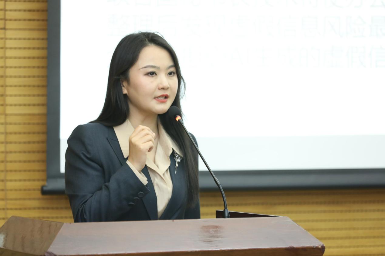 中国司法大数据研究院社会治理发展研究部李俊慧部长作了题为《司法大数据研究与应用——数助决策的探索与实践》的报告,介绍了司法大数据研究与应用的主要内容、方法和成效,主要运用技术挖掘与分析模型,深度应用司法数据,服务国家治理,工作涵盖数据收集、算法开发、模型分析等。其研究不仅辅助政府决策,还完成上万份覆盖多领域的评估报告并推动政策完善。同时,推出“法研灯塔”等工具,推动数据治理与司法实践融合。