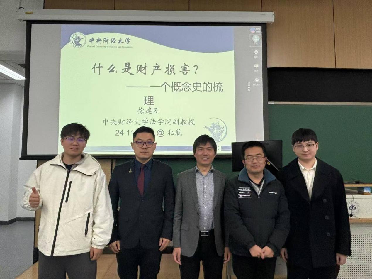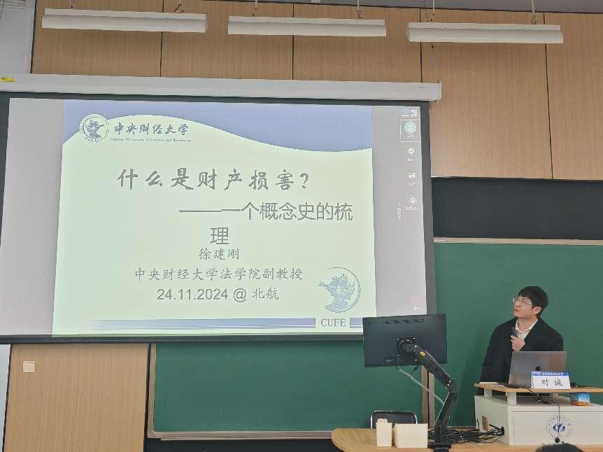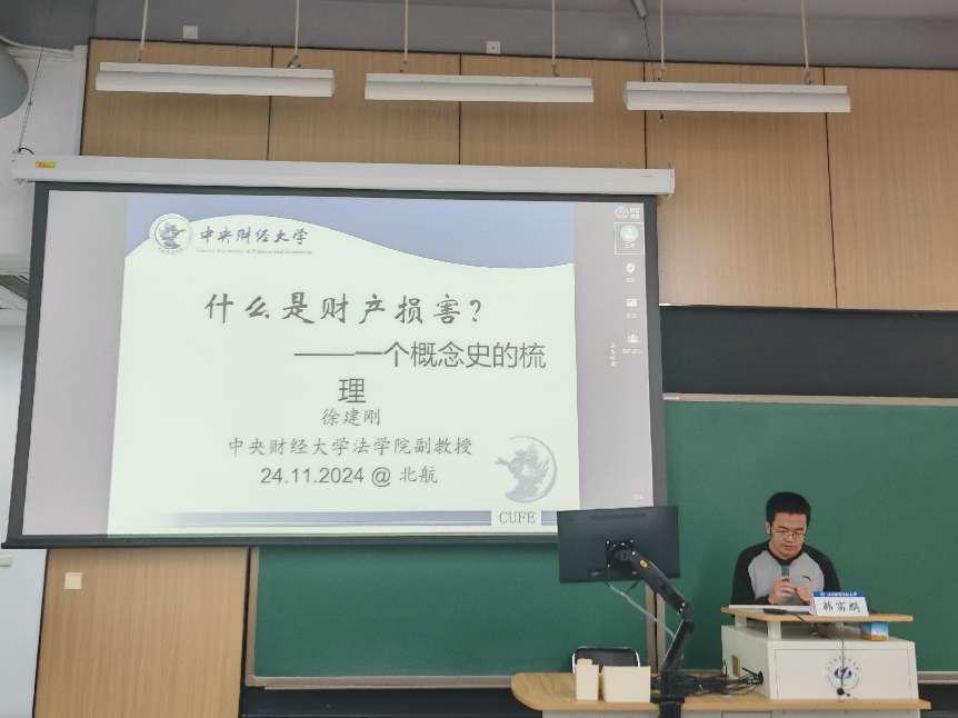 2024年11月24日上午9时,北京航空航天大学学院路校区新主楼B座118室举办以“什么是财产损害?——一个概念史的梳理”为主题的学术研讨会。本次会议由北京航空航天大学法学院主办,由网络法前沿编辑部、工业和信息化法治战略与管理重点实验室、北京科技创新研究基地协办。本次会议由中央财经大学法学院徐建刚副教授担任主讲人,由中央民族大学韩富鹏老师、中国社会科学院法学研究所时诚助理研究员、清华大学刘冲博士作为与谈嘉宾,会议由北京航空航天大学法学院赵精武副教授主持。