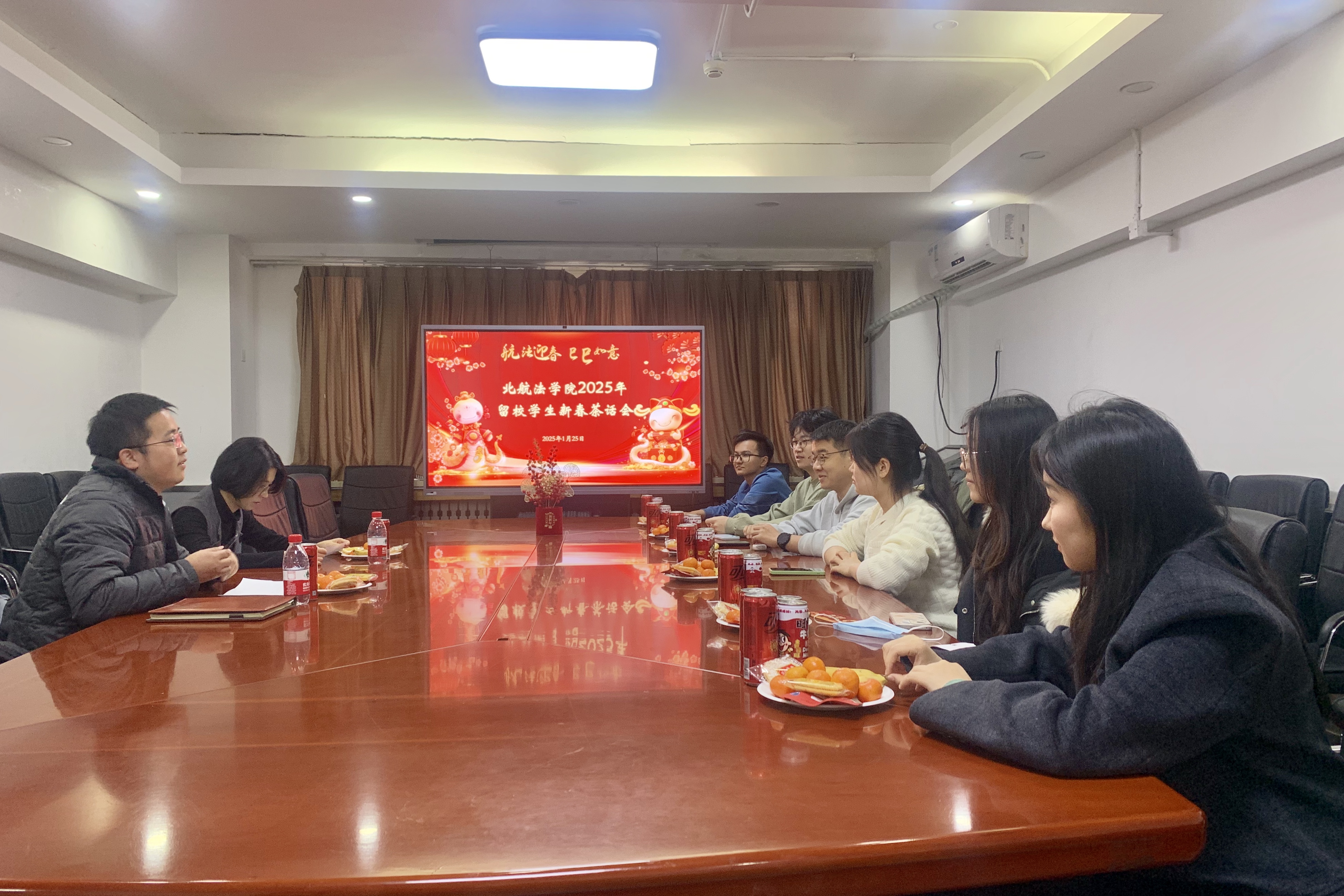 1月25日上午法学院举行寒假留校学生新春茶话会,学院副院长初殿清、党委副书记邹沛东与寒假留校学生欢聚一堂、亲切交谈,共同迎接新春佳节的到来。