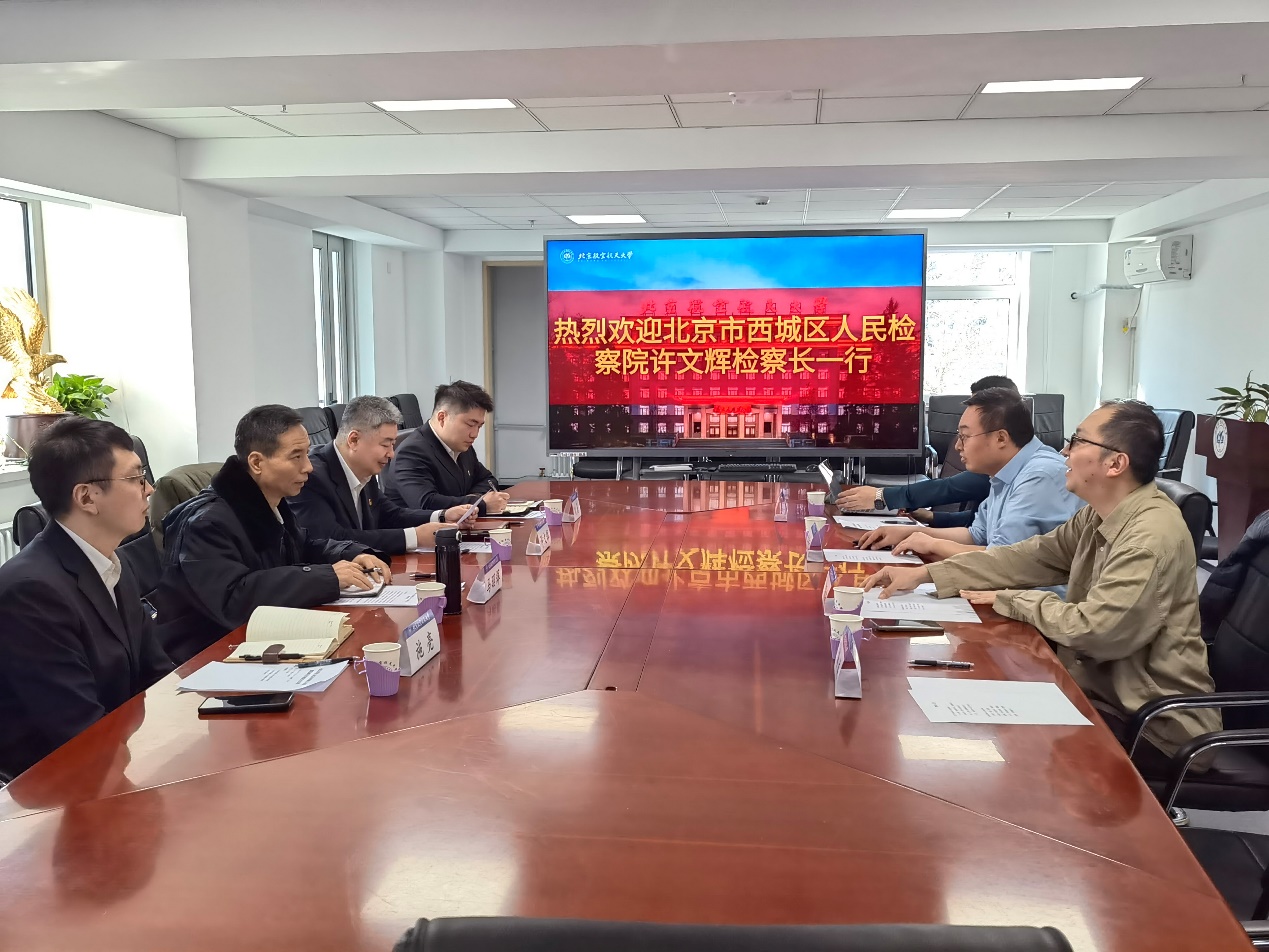 3月6日(周四)10时许,恰逢春暖花开之际,我院与北京市西城区人民检察院战略合作座谈会在9号楼201会议室顺利举办。参加本次座谈会的有:北京市西城区人民检察院党组副书记、副检察长许文辉,检委会专职委员马昭辉,第八检察部副主任施亮,政治部一级主任科员刘磊;北京航空航天大学法学院院长泮伟江教授,党委副书记邹沛东老师,院务委员吉冠浩副教授,院长助理赵精武副教授,院长助理李游副教授。