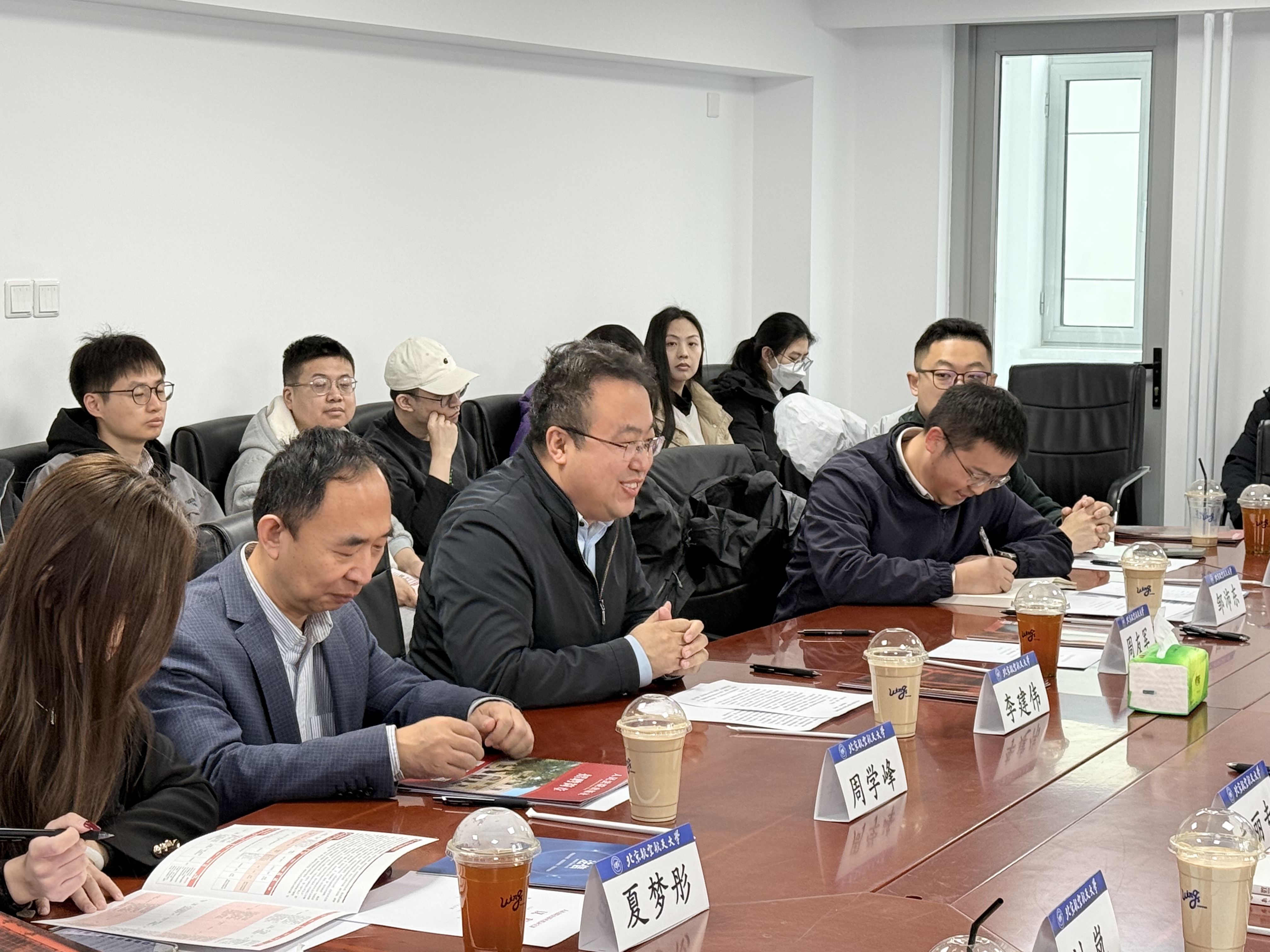 座谈交流环节,邹沛东就学院学生近年来学生学术科研、实习就业情况做介绍,周友军代表学院感谢人民法院出版社对北航法学学科发展和人才培养的大力支持,表示将以此次交流调研为契机,持续深化院-社常态化交流合作,共建高层次学术平台,助推双方业务发展迈上新台阶。与会人员围绕双方关注的合作领域和前沿问题进行了广泛深入交流。
