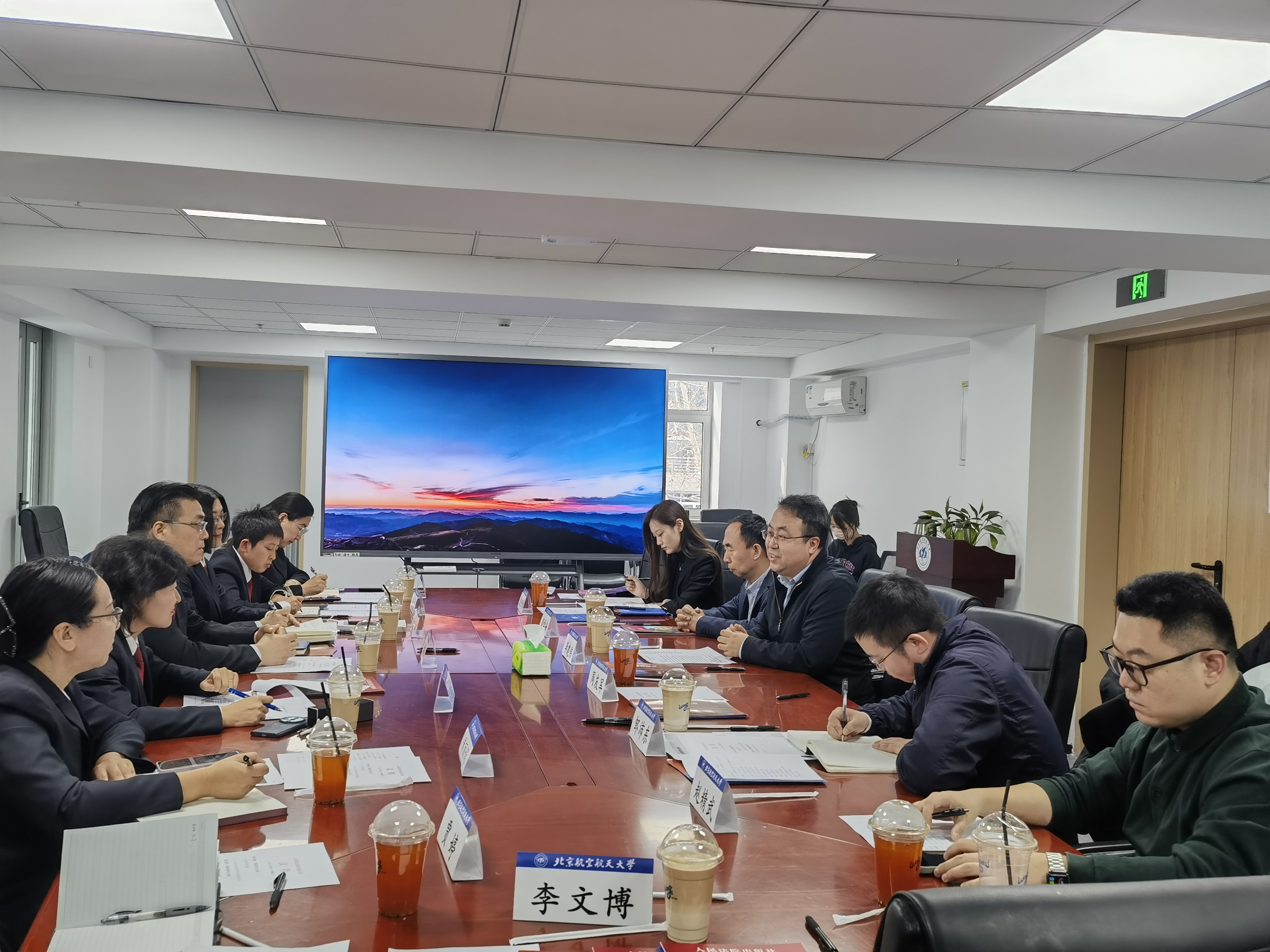 李建伟对袁登明一行的到来表示热烈欢迎,并对北航精品文科建设、交叉前沿成果等方面的情况做了详细介绍。他表示,最高人民法院及各直属单位为北航法学学科建设和高质量科研工作提供了坚实支撑。最高法及各直属单位选育、培养了一大批北航校友,有力支持了一流人才培养工作,期待双方在科研智库、人才培养等方面继续通力合作,推进学科和学术平台建设取得更大成果。