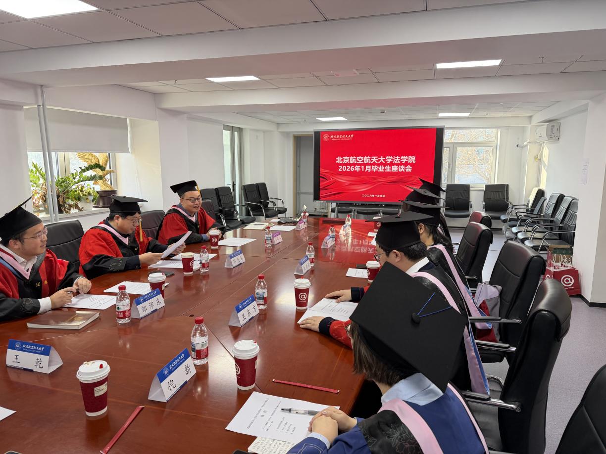 2026年1月8日上午,法学院2026届春季毕业生代表座谈会暨学位授予仪式在九号楼201会议室举行。学院党政班子成员、学院专兼职辅导员及2026年春季毕业生代表参加座谈。会议由学院书记周友军教授主持。
