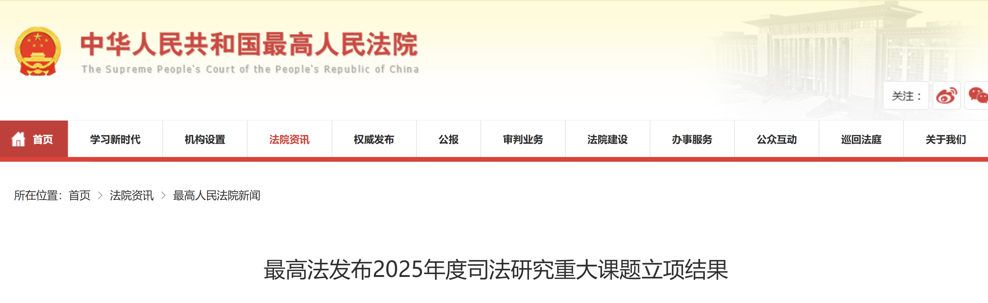 最高人民法院司法研究重大课题是我国法院系统公认级别最高、影响力最大的研究项目,其成果将直接应用于司法改革和审判实践,为服务“十五五”规划、推动审判工作高质量发展提供权威智力支持。课题经广泛征集、多轮严格评审并报最高人民法院党组审定,最终从845个申报课题组中确定了93个中标课题组。