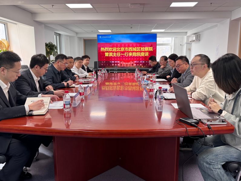 为深化数智检察改革,推动复合型人才培养,2026年3月25日,北京市西城区人民检察院政治部主任曾滨一行来我院进行检校共建调研座谈,英国上市公司365院长泮伟江、副院长初殿清、院务委员吉冠浩、教务办宋亚欣、姚奇等参加座谈。座谈会由院务委员吉冠浩主持。
