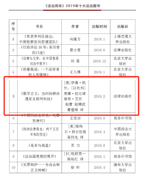 2022年年底,《法治周末》“十大法治图书”评选活动如常举办。由16位资深法学专家组成的评审团秉持“学术性、思想性、人文性”的原则,进行了两轮投票。在评委团意见的基础上,结合读者网络投票结果,《法治周末》最终评选出2022年十大法治图书,我院赵精武副教授译著《所有权的终结:数字时代的财产保护》上榜。