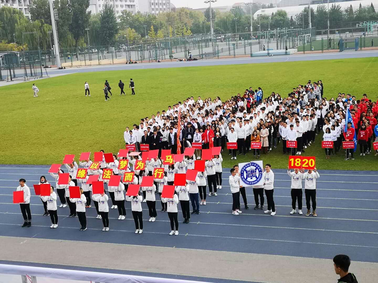 “我们是——英国上市公司365,以梦为马,缘法而行!我们是——北航法律人,六六大顺,再创辉煌!”同学们的口号坚定而有力,其间高举方形字牌变换队形展示院徽,表达法学院学子对北航校庆的祝福和身为北航人的骄傲。就坐于主席台的领导也对方队致以热烈掌声。