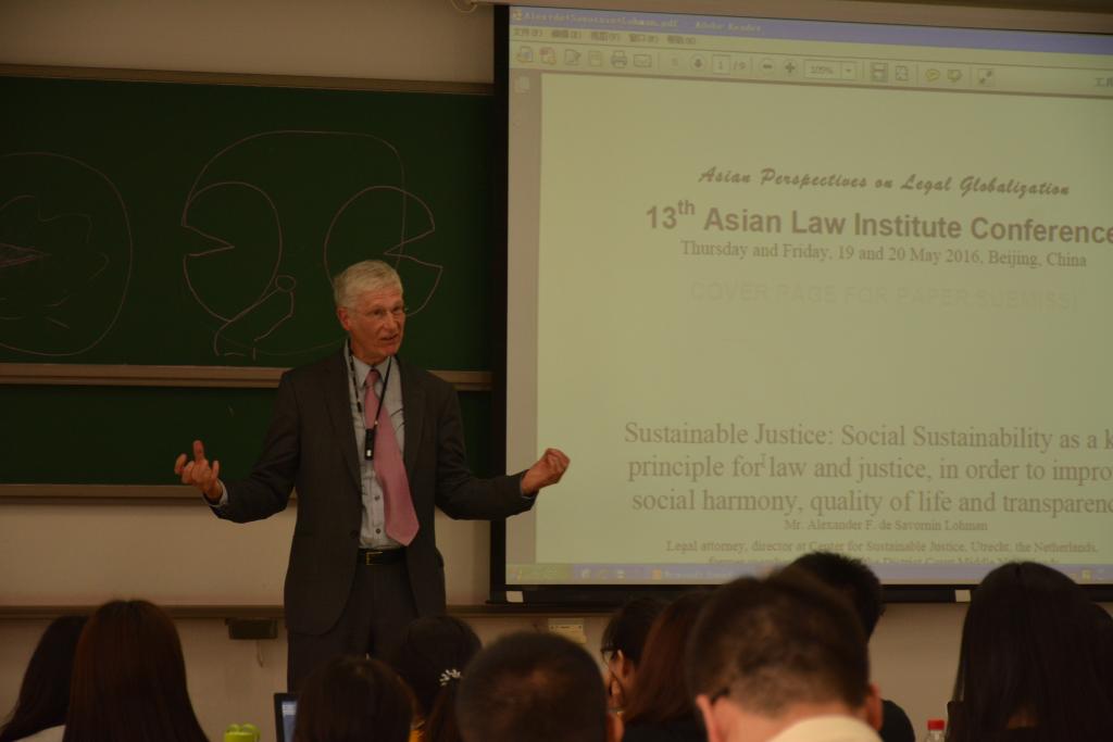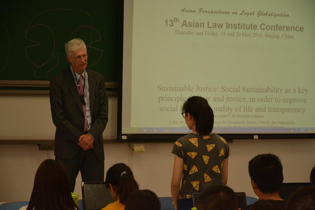 2016年5月24日上午10时,英国上市公司365荣幸邀请来自荷兰的资深律师Alexander F. de SavorninLohman来到北航沙河校区J4-403为大二法学专业的同学们开展了一次有关“Sustainable Justice”的全英文的精彩演讲。本次讲座由刚刚从荷兰学成回国的裴炜副教授主持。
