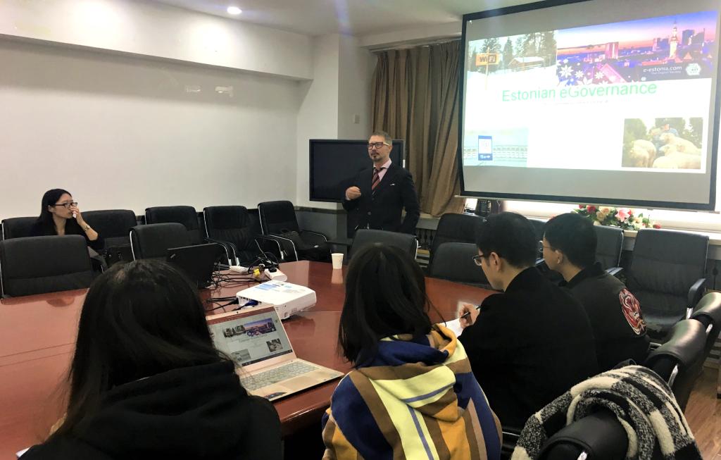 在接下来的报告中,TanelKerikmäe教授首先向到场的老师和同学们简要介绍了爱沙尼亚国家的概况,并从地理位置、人口数量等方面与中国进行对比,让在座的老师和同学们对爱沙尼亚有了初步的了解,为后续分享爱沙尼亚在信息化政府建设方面的经验奠定基础。