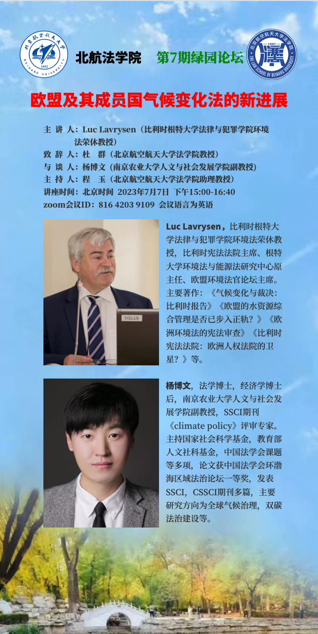 第7期绿园论坛| Luc Lavrysen:欧盟及其成员国气候变化法的新进展
