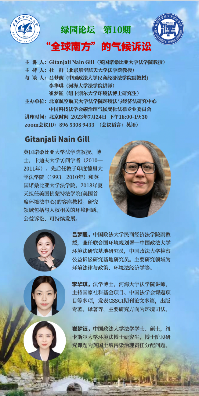 讲座预告|Gitanjali Nain Gill教授:“全球南方”的气候诉讼