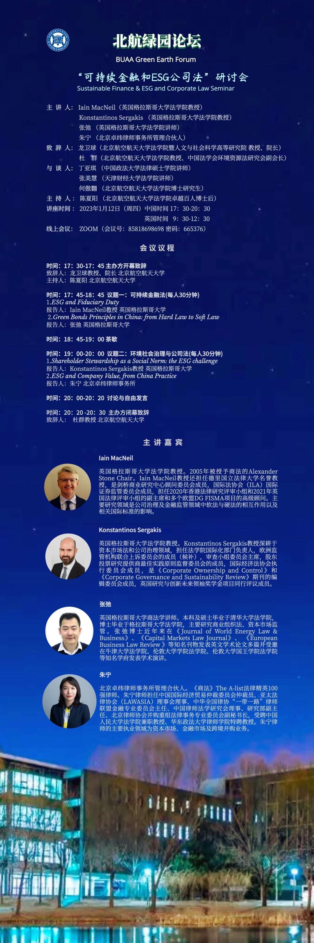 讲座预告 | 北航绿园论坛:“可持续金融和ESG公司法”研讨会
