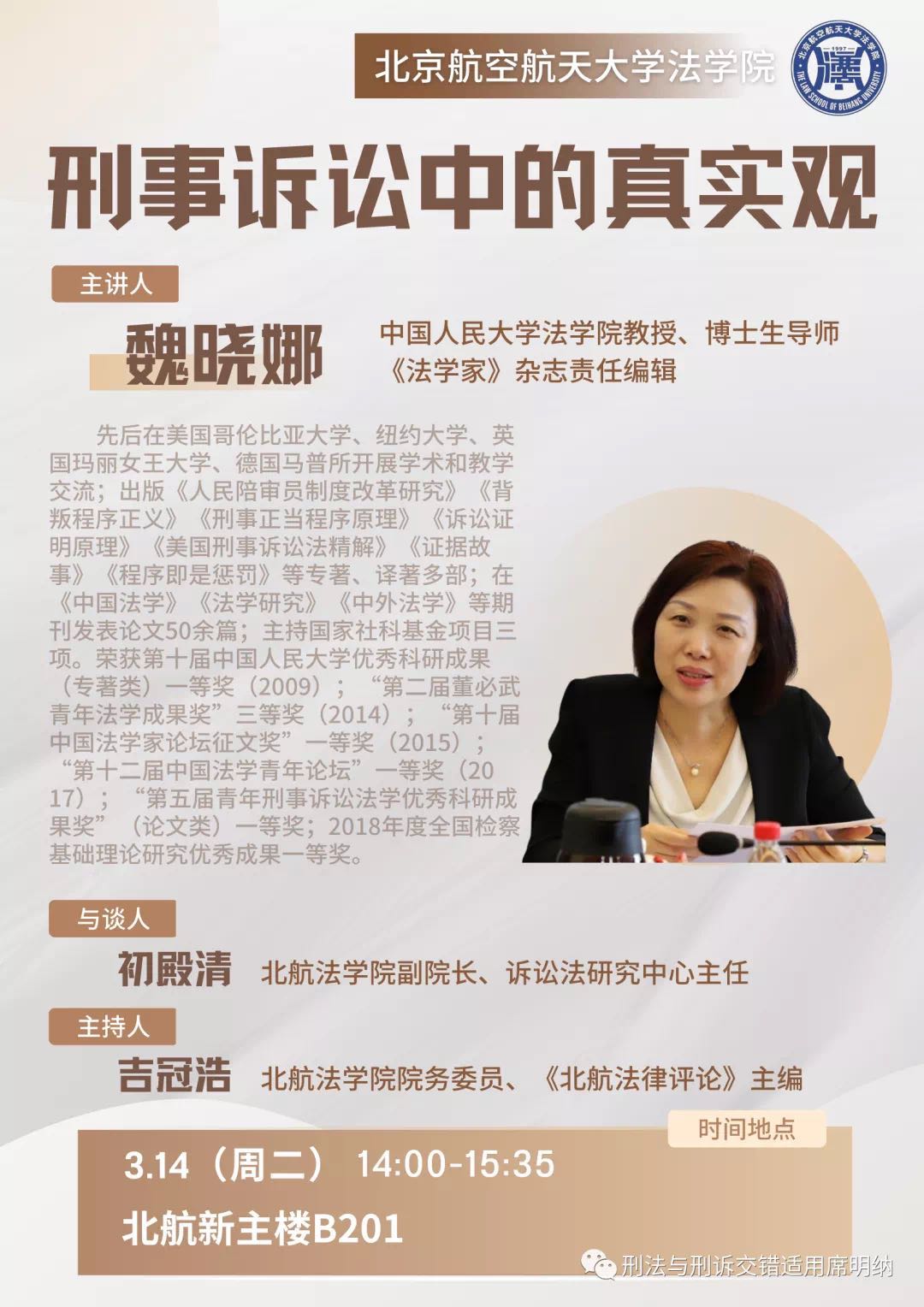 讲座预告 | 魏晓娜:刑事诉讼的真实观