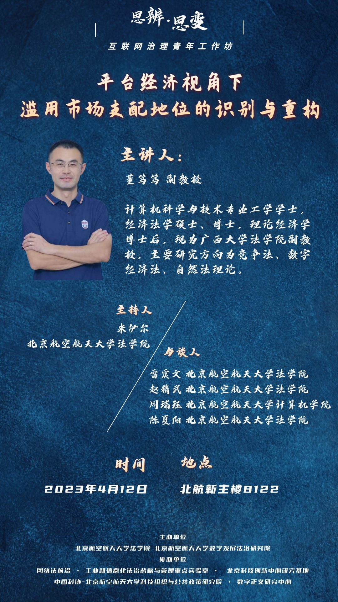 “思辨·思变”互联网治理青年工作坊讲座预告 | 董笃笃:平台经济视角下滥用市场支配地位的识别与重构