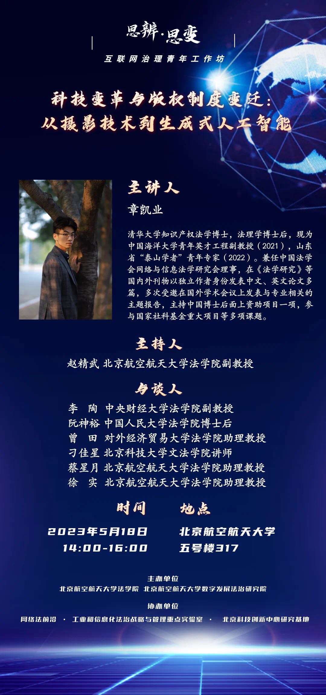 “思辨·思变”互联网治理青年工作坊讲座预告|章凯业:科技变革与版权制度变迁:从摄影技术到生成式人工智能