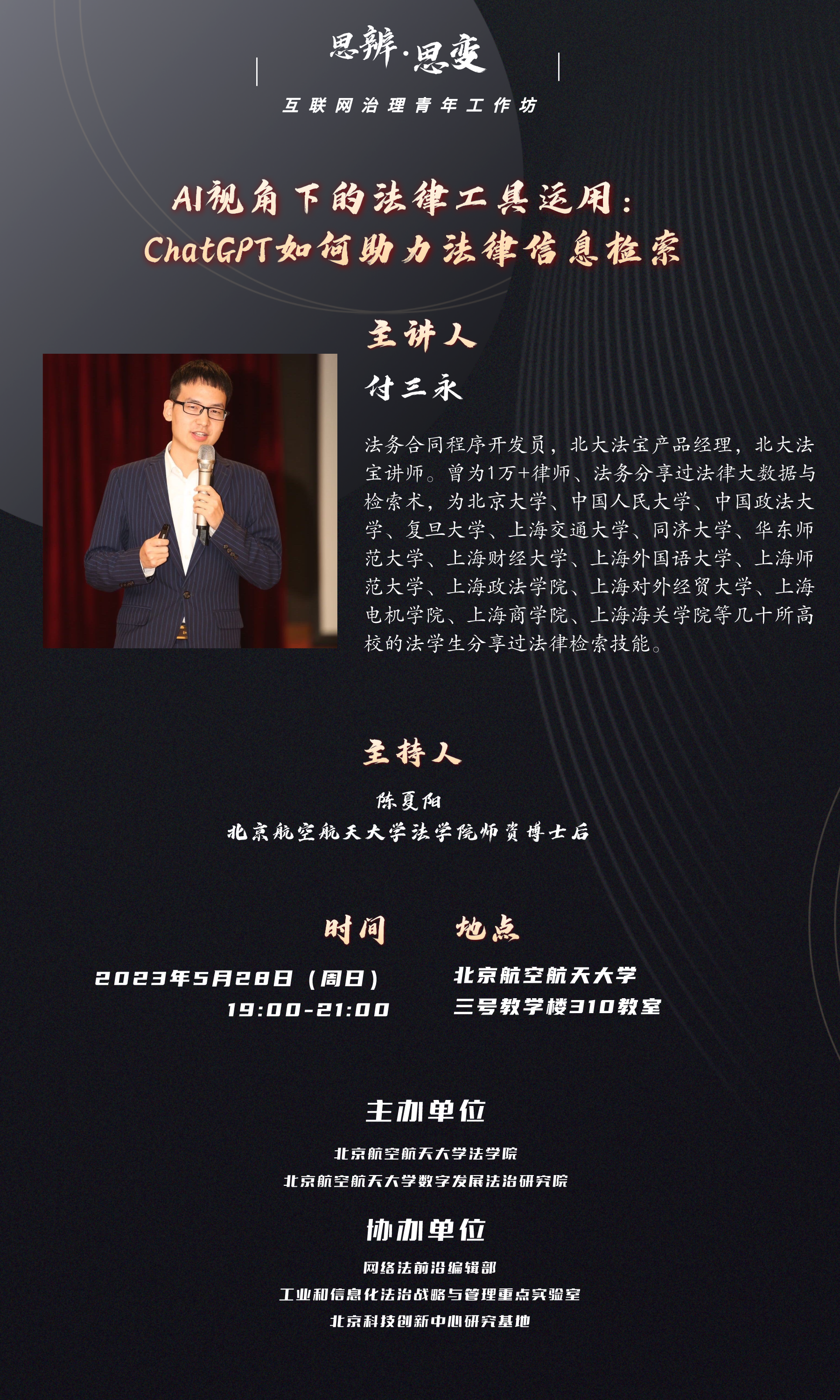 “思辨·思变”互联网治理青年工作坊讲座预告|付三永:AI视角下的法律工具运用——ChatGPT如何助力法律信息检索