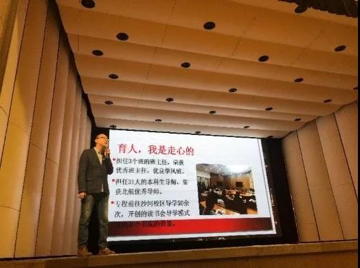 吉冠浩老师在过去的一学年里,开设了七门课程,所授课时高达205学时。他在实习期间和同学同吃同住,指导学生比赛期间全程参与,态度认真负责。他说,老师的育人王国,需要学生去开疆拓土,希望和未来永远都是学生的。这种园丁精神和奉献精神收获了在场学生的热烈掌声和老师的一致共鸣。